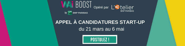 BNP Paribas lance la 4ème saison de WAI Boost et appel à la candidature jusqu’au 6 mai 2018. C’est un programme de co-expérimentation entre start-up et grandes entreprises. Cette combinaison unique avec six mois de collaboration intensive avec un corporate et une accélération business et technique personnalisée, par les entrepreneurs en résidence de l’Atelier BNP Paribas.