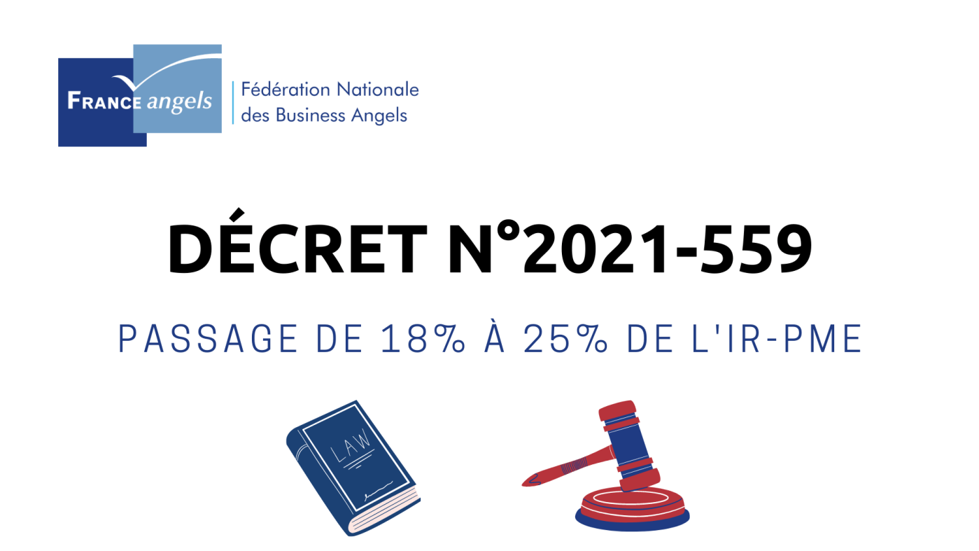 Nous vous invitons à prendre connaissance du Décret n°2021-559 du 6 mai 2021 qui fixe le passage de 18 à 25% de l’IR-PME lorsque vous investissez dans une PME au sens européen du terme. Obtenez plus d’informations en lisant le Décret ici.